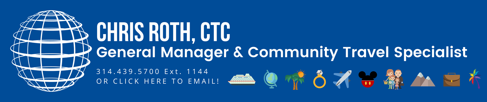 "If you have the chance to utilize Christopher Roth's services as a travel agent, do so, as you will not be disappointed. He stays on top of your needs. If anything goes wrong that is where he really shines in finding the best way forward in making your trip right. -B. 2023